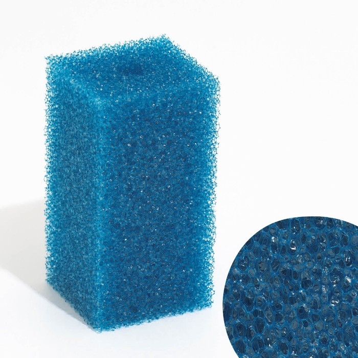 Губка прямоугольная для фильтра № 3, крупнопористая, 6 х 6 х 12 см, синяя