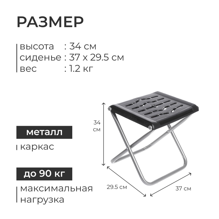Стул складной Nika, 36.5 х 29.5 х 34 см, цвет чёрный