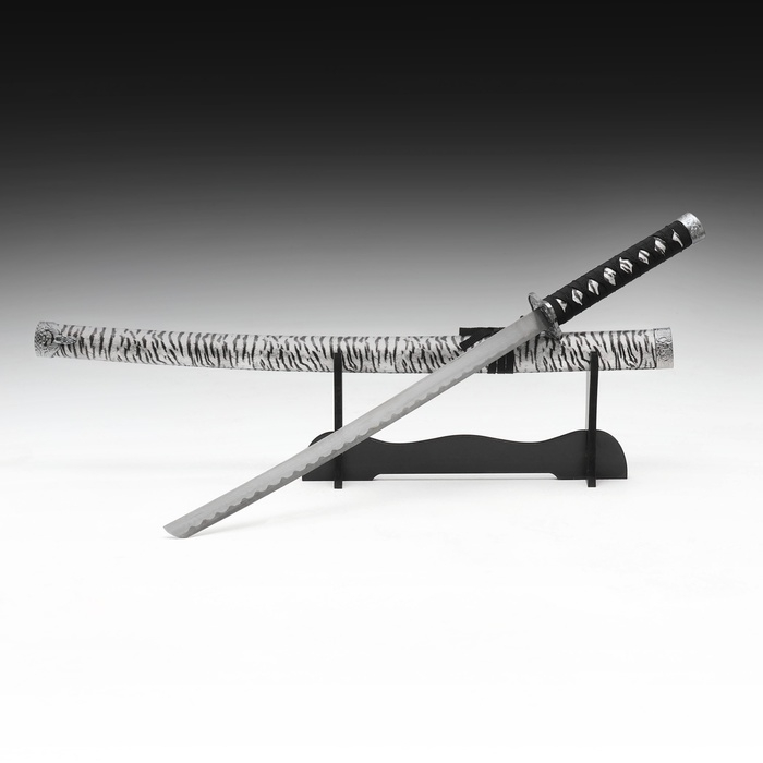 Сувенирное оружие «Катана на подставке», серые ножны под зебру, 89см