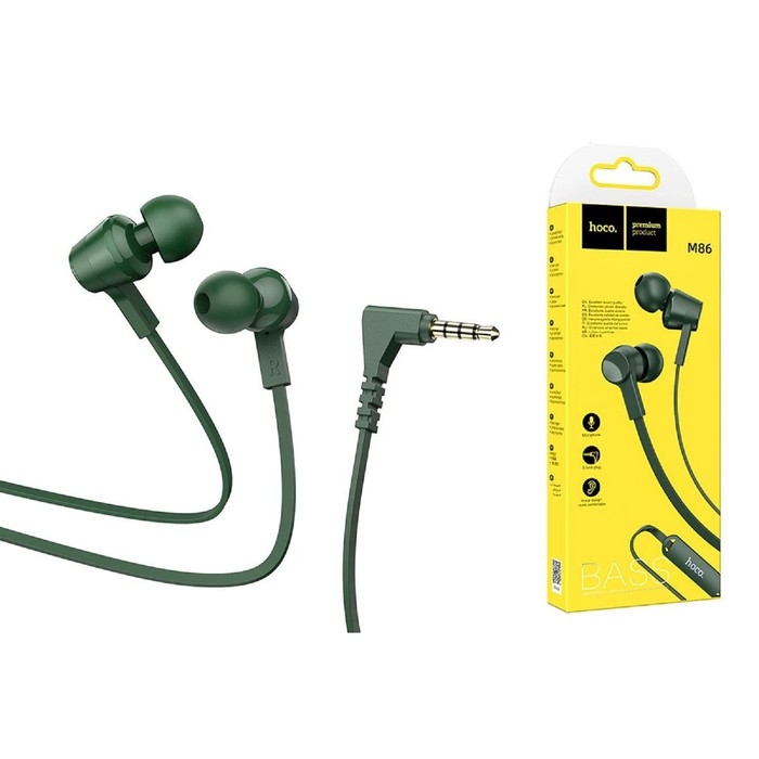 Наушники Hoco M86, проводные, вакуумные, микрофон, Jack 3.5 мм, 1.2 м, зеленые