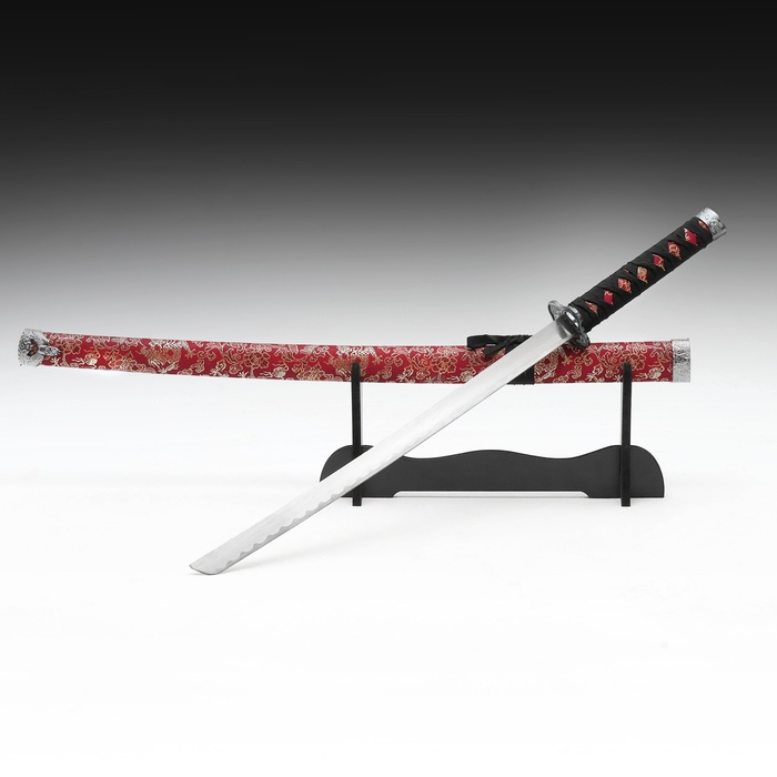 Сувенирное оружие «Катана на подставке», цветочный узор на ножнах, 89см