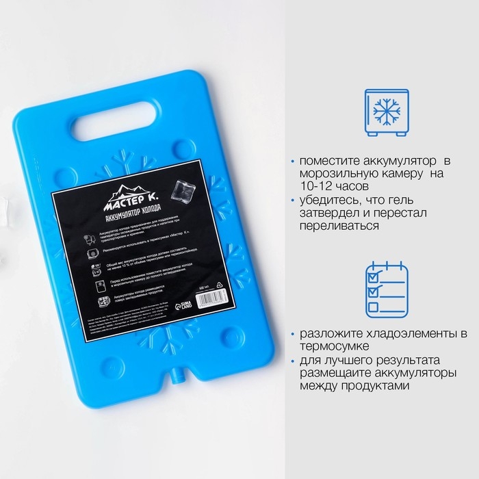 Аккумулятор холода - гелевый хладоэлемент для термосумки "Мастер К.", до 20 ч, 900 мл