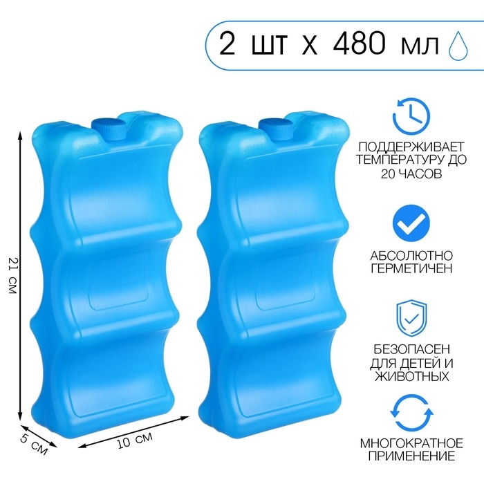Аккумулятор холода гелевый "Мастер К", набор 2 штуки по 480 мл, хладоэлемент для термосумок, 21 х 10
