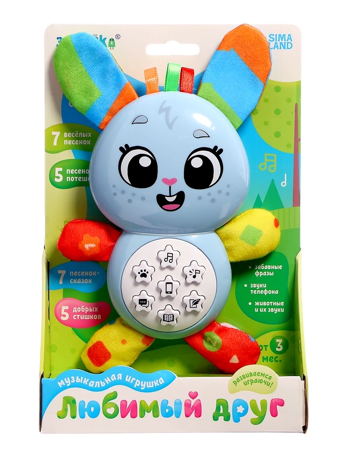 Музыкальная игрушка «Любимый друг. Зайчик», песни, стихи, фразы