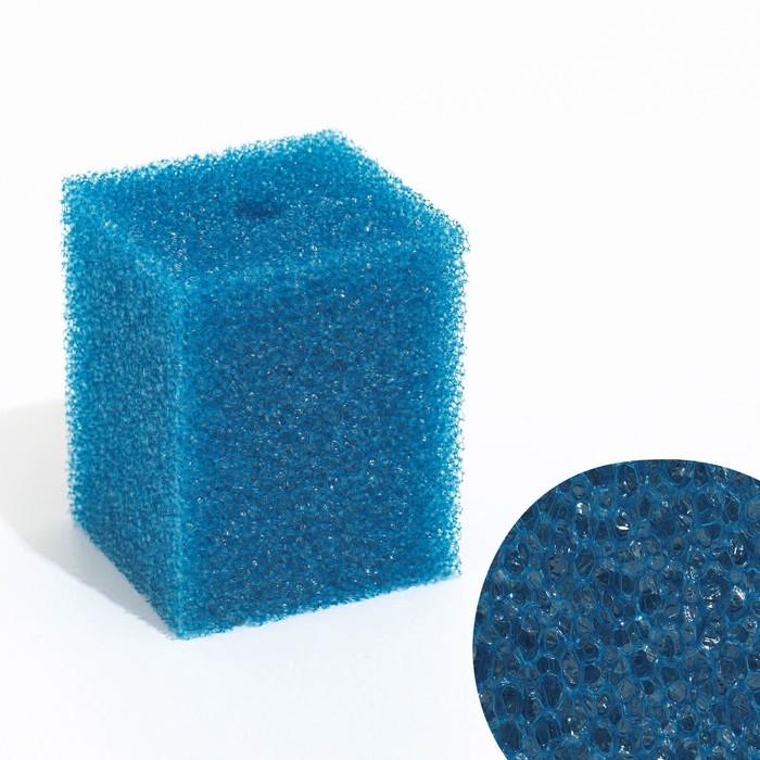 Губка прямоугольная для фильтра № 7, крупнопористая, 8 х 8 х 10 см, синяя