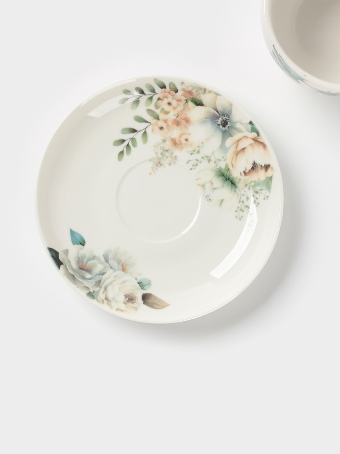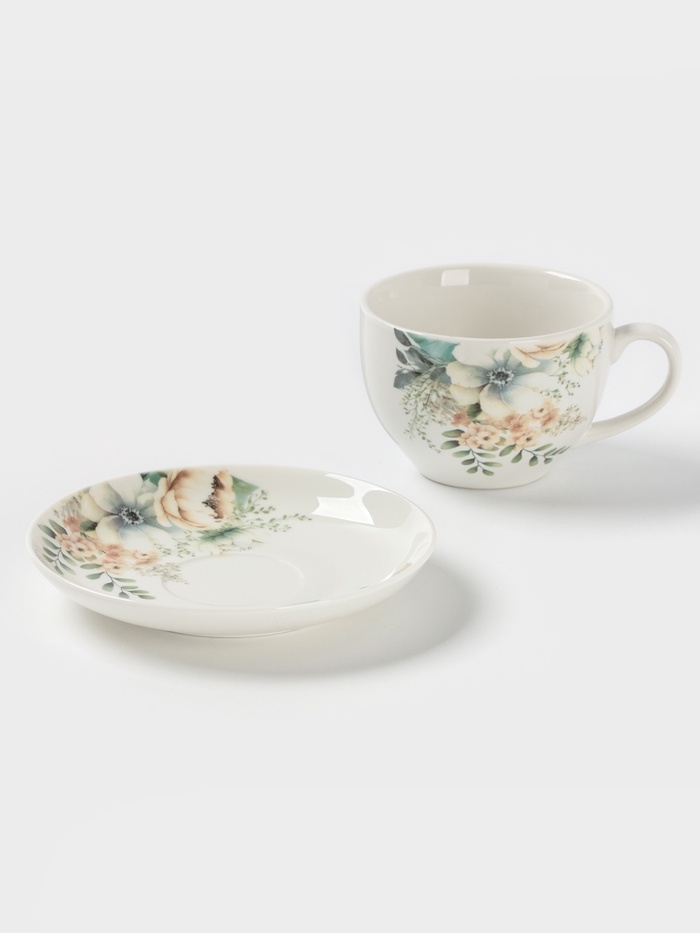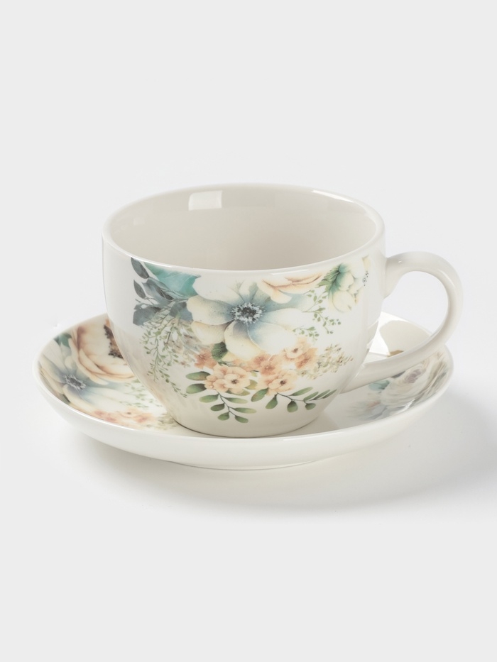 Чайная пара Доляна "Цветы" цвет белый чашка 250 мл, блюдце 15 см