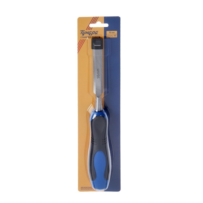 Стамеска-долото ТУНДРА, металлический затыльник, 2К рукоятка, 16 мм