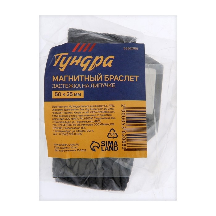 Магнитный браслет ТУНДРА, застежка на липучке, 50 х 25 мм