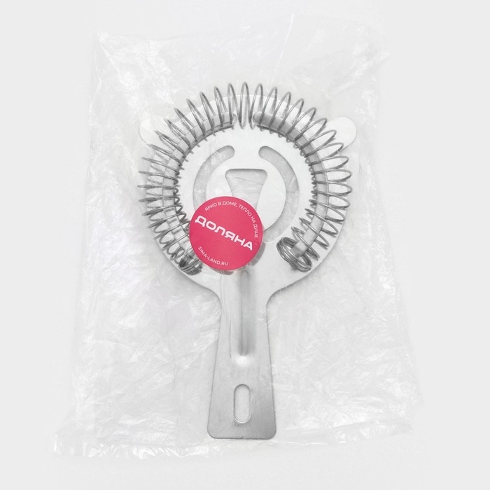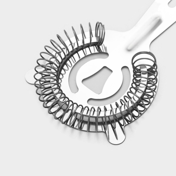 Стрейнер с ушками - это барный инвентарь, предназначенный для фильтрации и отделения жидкости от твёрдых частиц в коктейлях и других напитках. Он имеет форму головы Чеширского кота, изготовлен из нержавеющей стали и не погружается в смесительную ёмкость. Благодаря новой системе встраивания пружины обеспечивается плотное прилегание стрейнера к краям ёмкости.