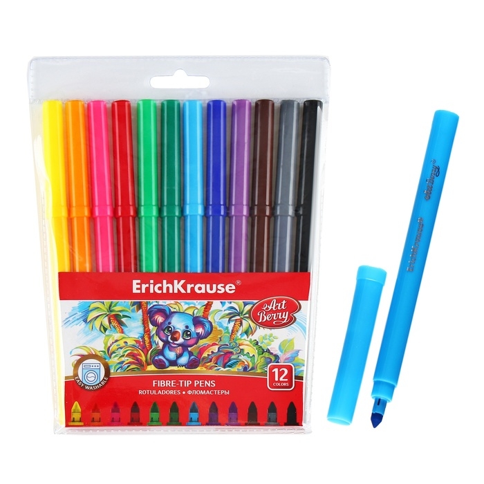 Фломастеры 12 цветов ErichKrause ArtBerry Super Tip Easy Washable, смываемые, вентилируемый колпачок, европодвес