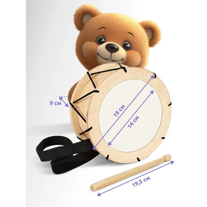 - На барабане есть ремешок, который можно повесить на шею, чтобы не держать игрушку в руках.