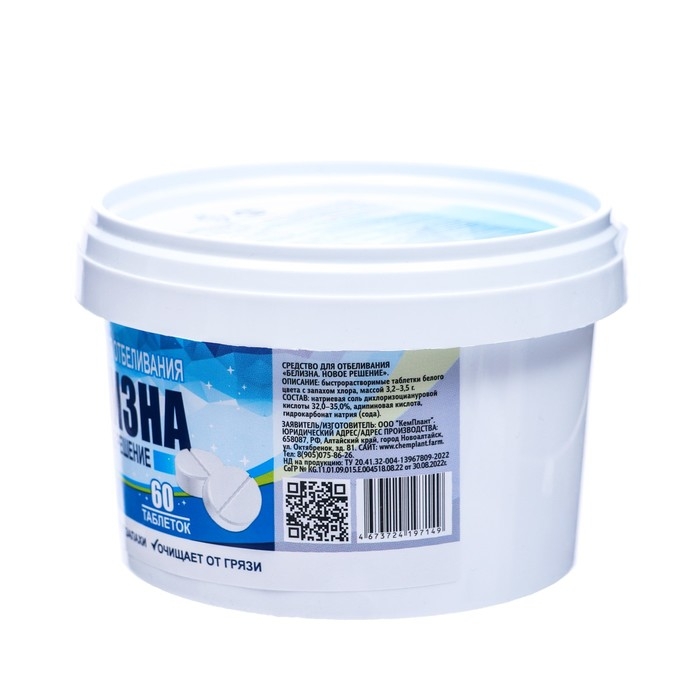 Отбеливатель «Белизна Новое решение» в форме таблеток — это современное средство для дезинфекции и отбеливания. В упаковке содержится 60 таблеток.