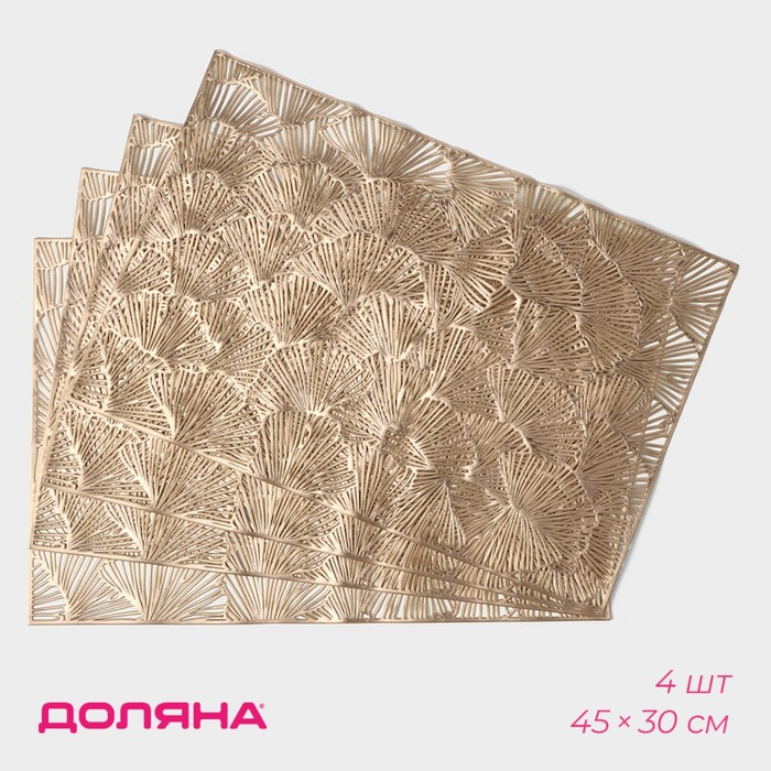 Салфетки сервировочные на стол Доляна «Веер», 4 шт, 30×45 см, цвет золотой