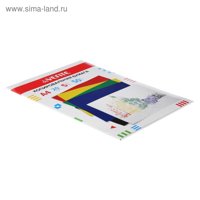 Бумага копировальная (копирка) А4, deVENTE, 50 листов, 5 цветов: красный, жёлтый, зелёный, синий, чёрный