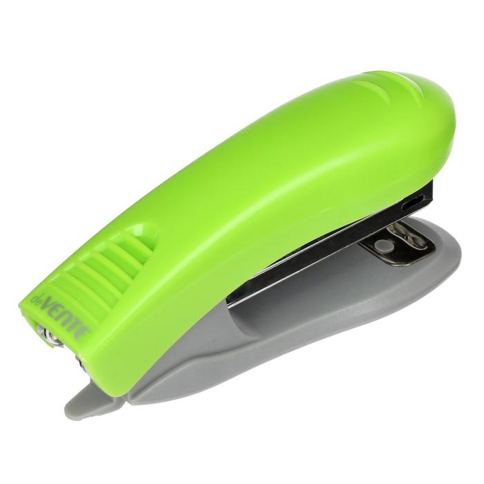 Степлер deVENTE. Neon № 10 (мощность 10 листовистов, глубина скрепления 43 мм) пластиковый, со встроенным антистеплером, в картонной коробке, неоновый зеленый