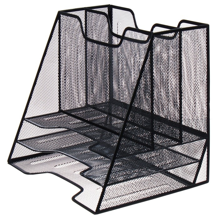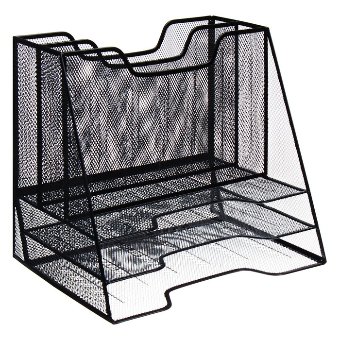 Подставка для бумаг, настольная, 5 отделений, сетка, металл, черный