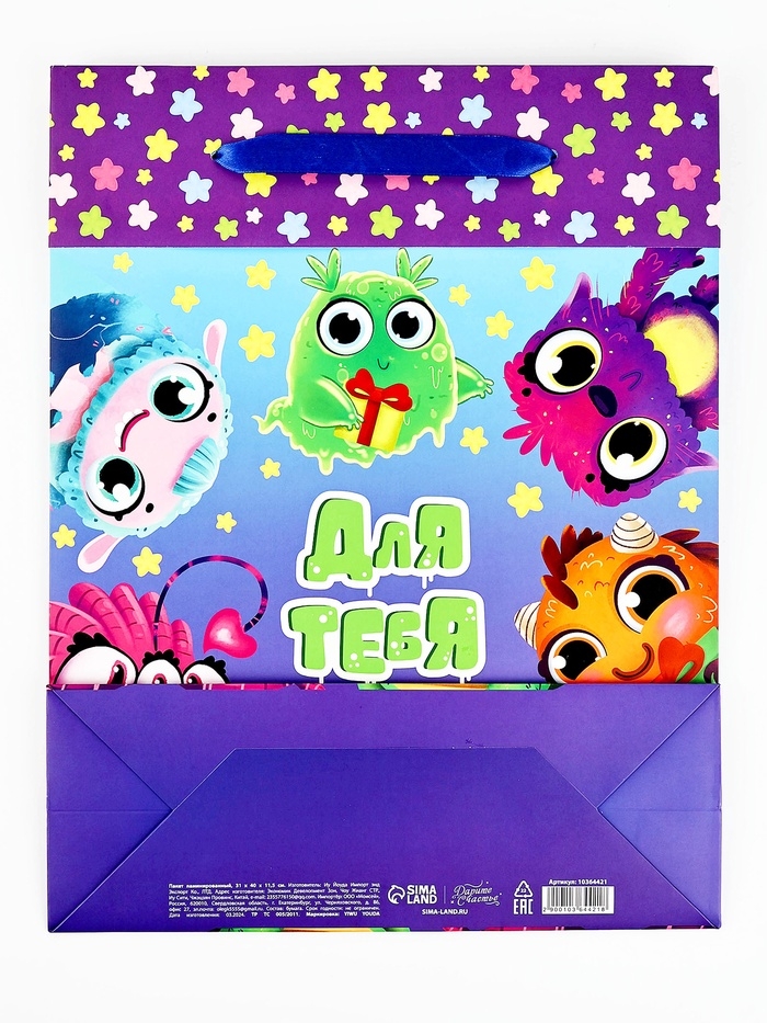 Пакет ламинированный двухсторонний «Монстрики», L 31 × 40 × 11,5 см