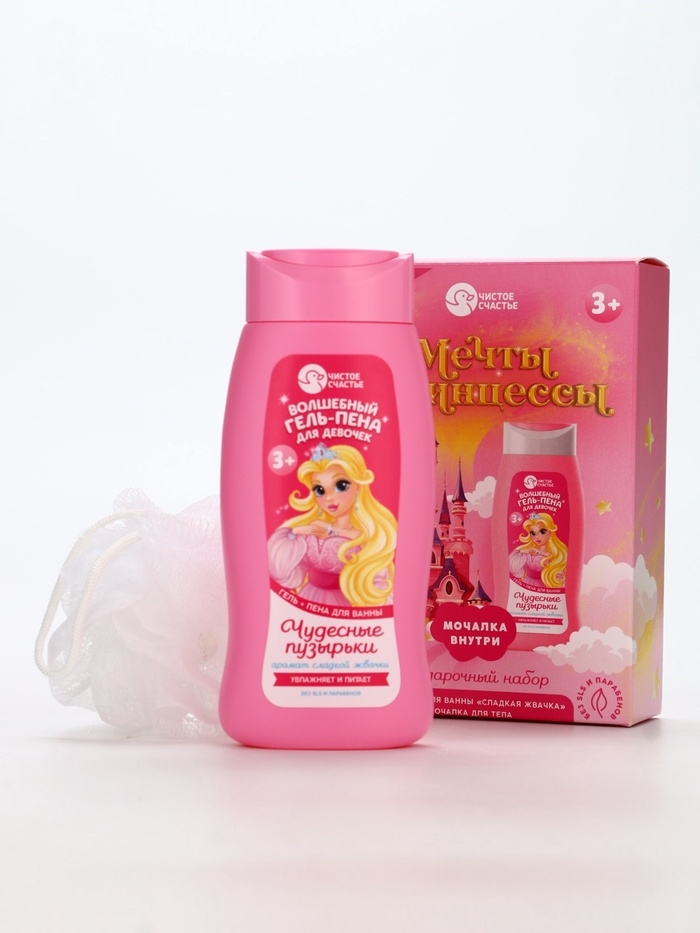 Набор детский "Мечты принцессы", гель-пена 250 мл, мочалка