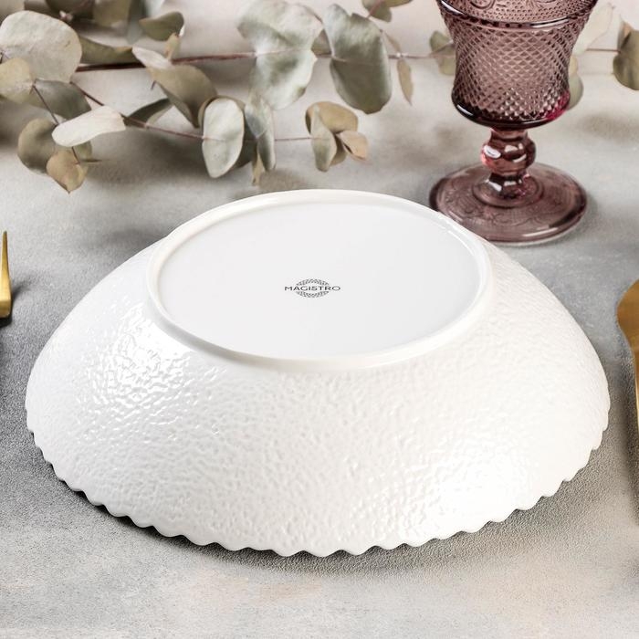 Салатник фарфоровый Magistro «Цветок Бланш», d=26,5 см, цвет белый