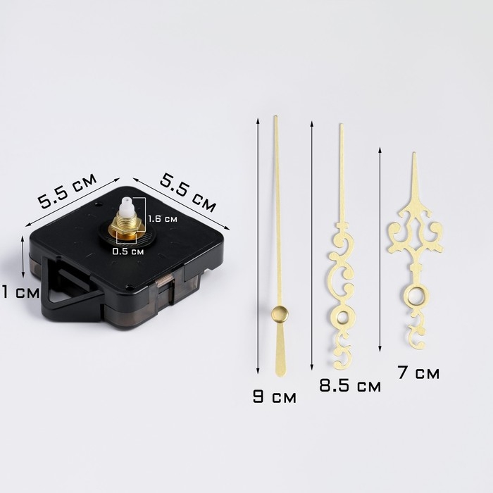 Часовой механизм со стрелками "Соломон-3", плавный ход, шток 16 мм, стрелки 70/95/115 мм