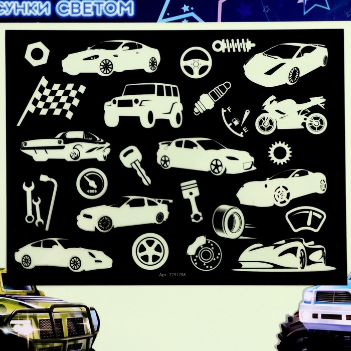 Набор для рисования светом «Машинки» + доска напиши и сотри, ручка с фонариком, маркер