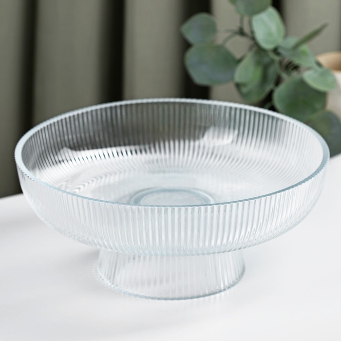 Блюдо на ножке «Камелия» изготовлено из качественного прочного стекла с рельефом. Посуда отлично подойдёт для праздничной сервировке, её можно использовать как салатник или фруктовницу. Такое блюдо будет в центре внимания и придаст изюминку вашей сервировке.