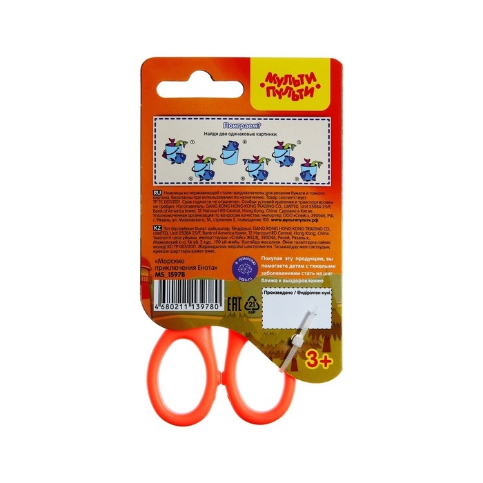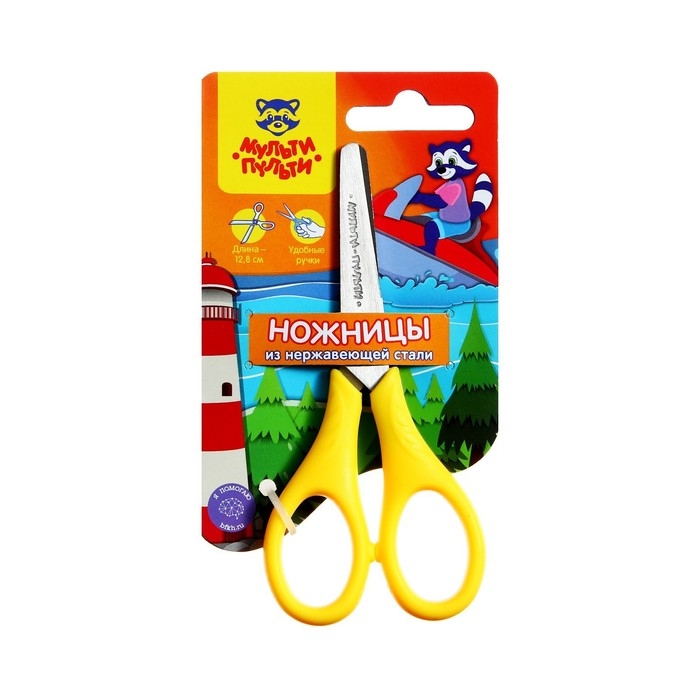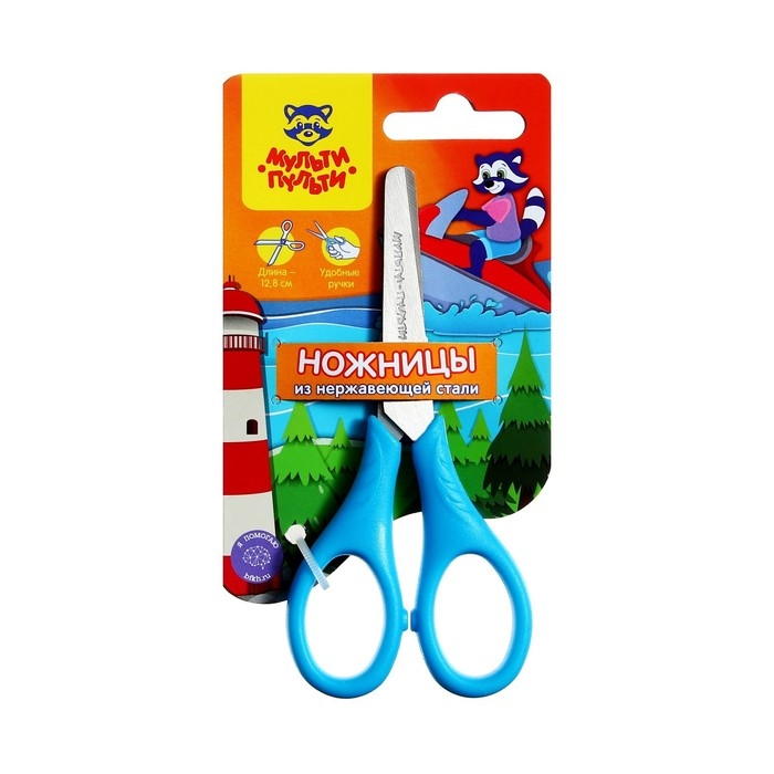 Ножницы 12,8 см детские Мульти-Пульти "Приключения Енота", микс, европодвес