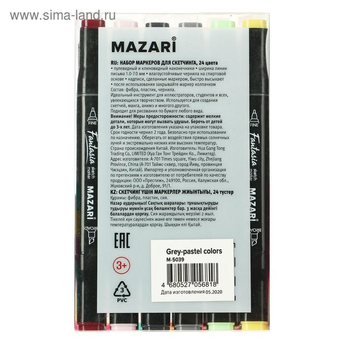 Маркеры для скетчинга двусторонние Mazari Fantasia 24 цвета Grey-Pastel colors (серо-пастельные цвета)