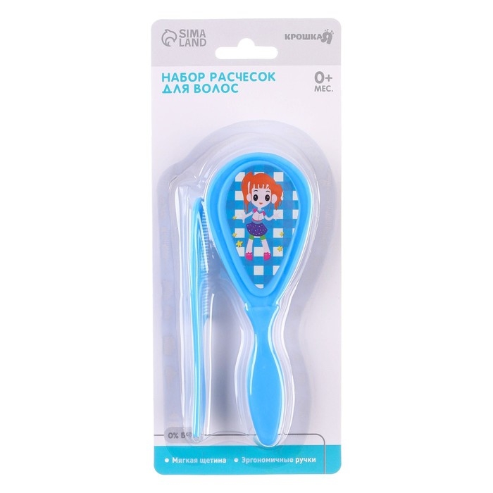 Набор детских расчесок, 2 шт., цвет голубой, рисунок МИКС
