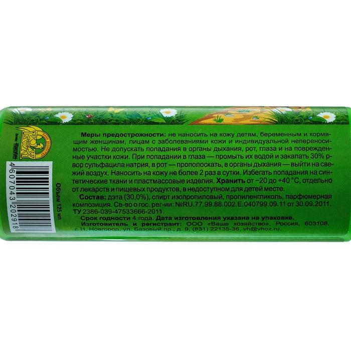 Состав: дэта (30,0%), спирт изопропиловый, пропиленгликоль, парфюмерная композиция.