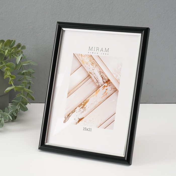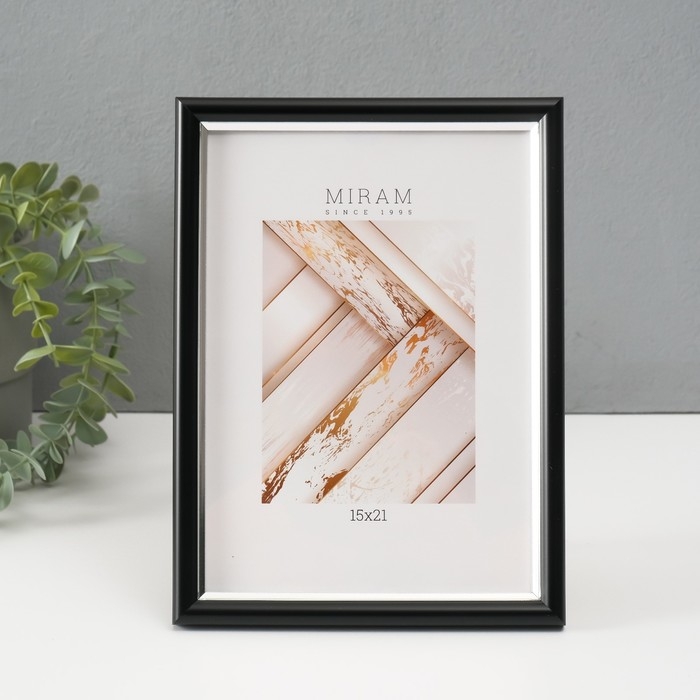 Фоторамка пластик "МИРАМ" 15х21 см, 636477 чёрный с серебром (пластиковый экран)