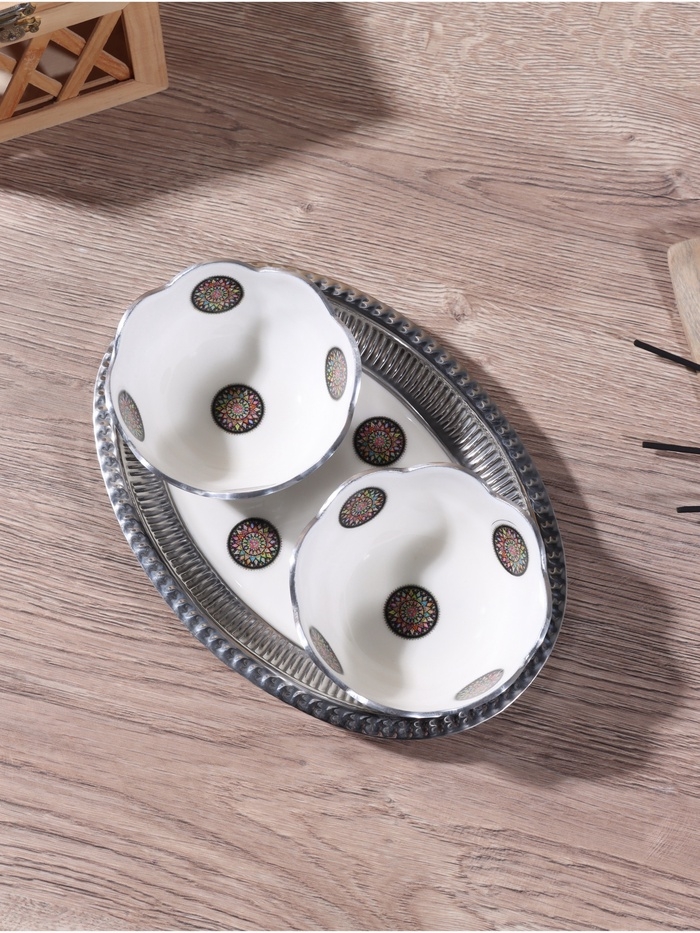 Менажница "Винтаж" (набор 2 шт) 10х10х5,5 см, на подносе, алюминий