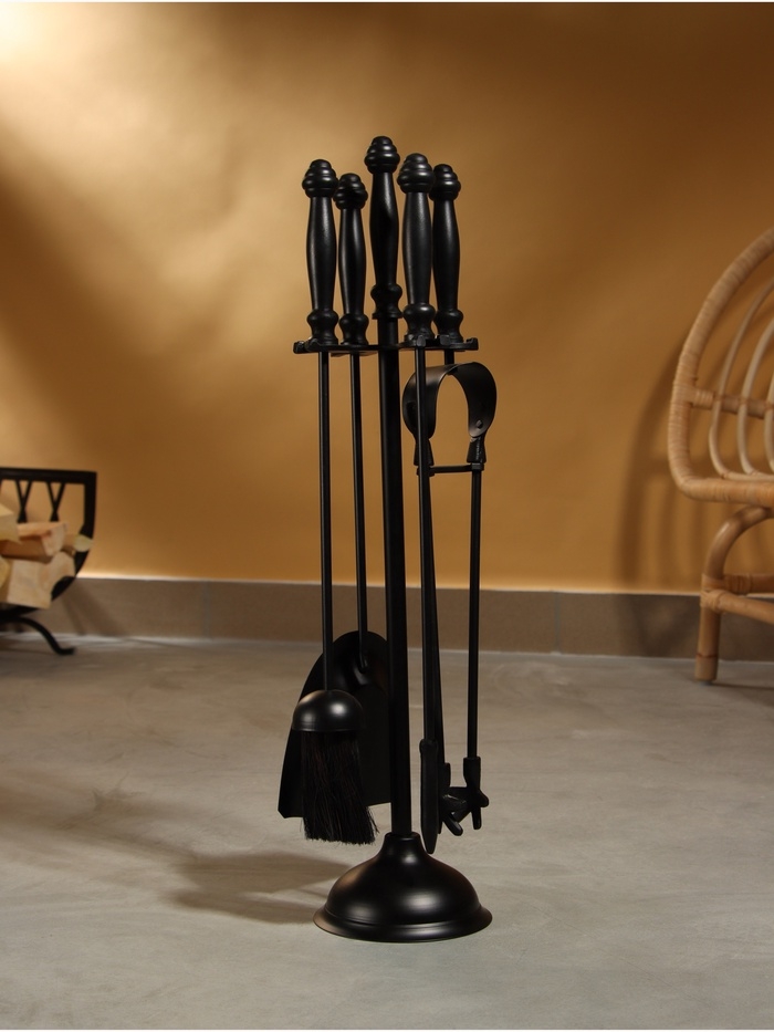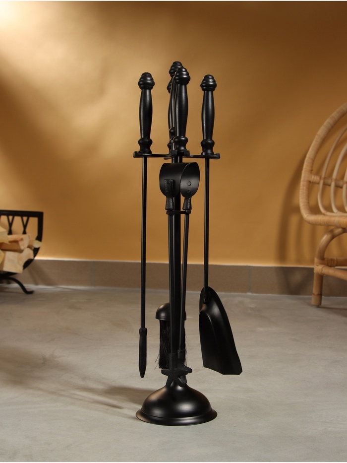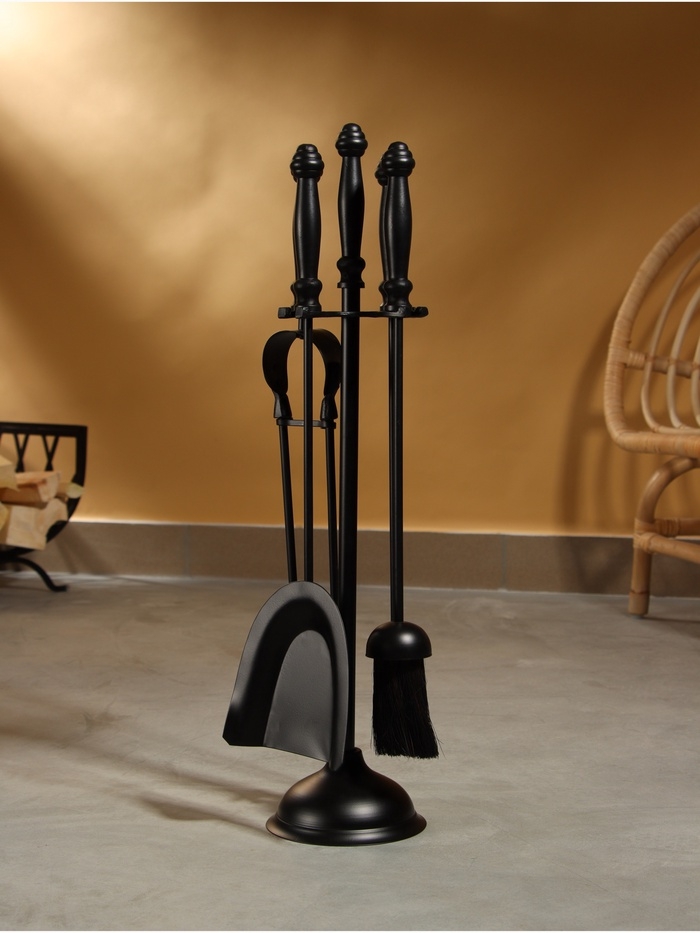 Каминный набор "Очаг" сталь, 4 предмета, 13х13х61 см
