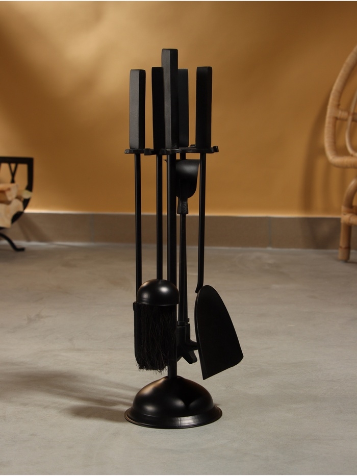 Каминный набор "Пламя" сталь, 4 предмета, 13х13х48 см