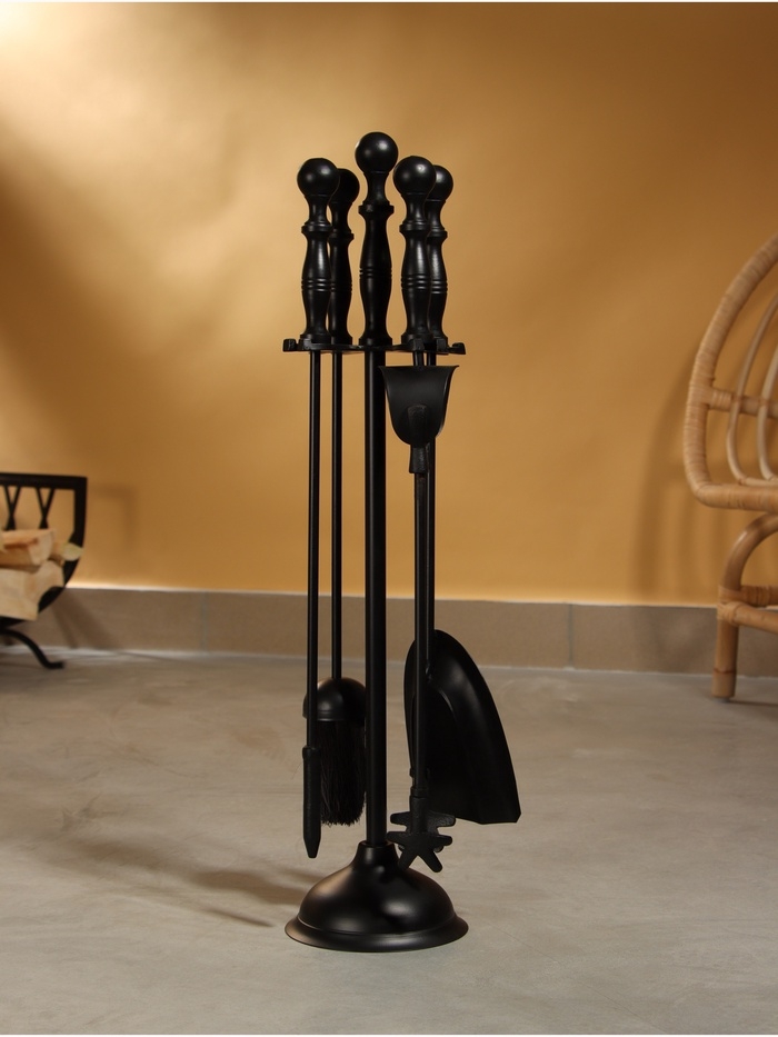Каминный набор "Дым" сталь, 4 предмета, 14х14х64 см