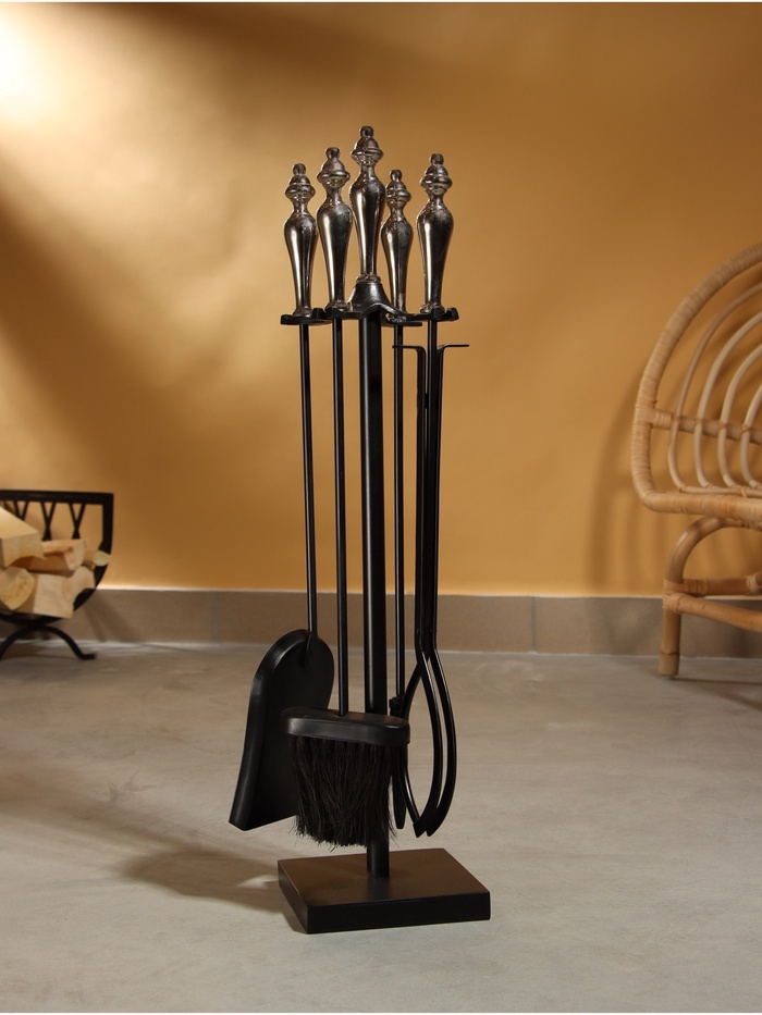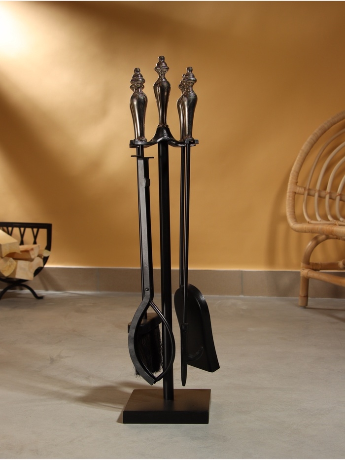 Каминный набор "Отдых" сталь, 4 предмета, 15х15х66 см