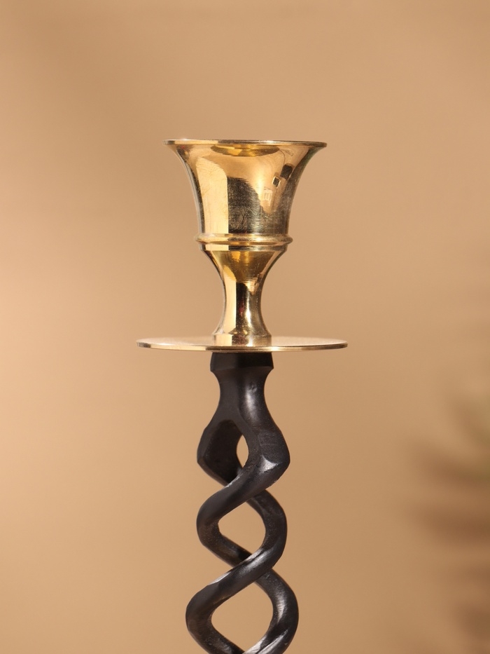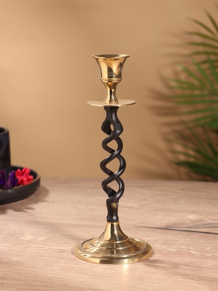 Подсвечник на 1 свечу "Спираль" латунь, черный с золотом 7х19 см