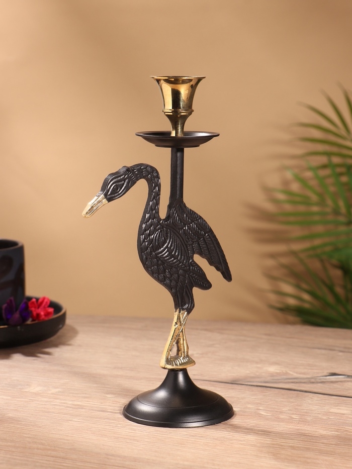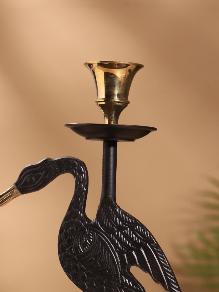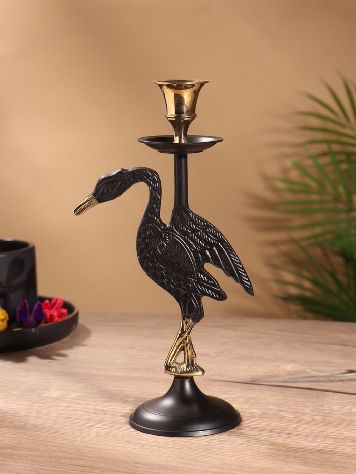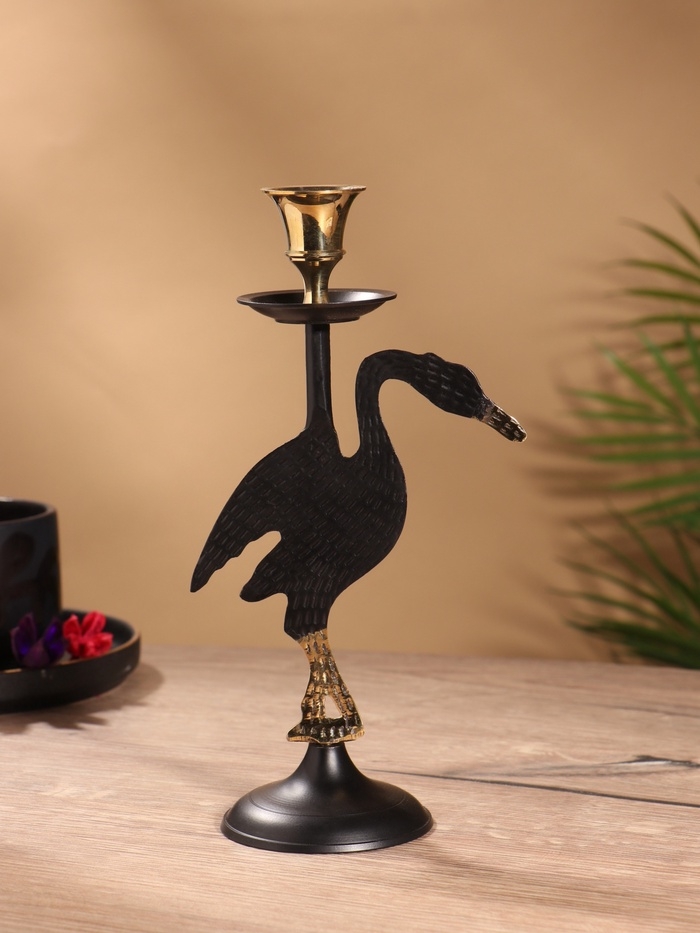 Подсвечник на 1 свечу "Дикая природа" латунь, черный с золотом 12х7,5х23,5 см