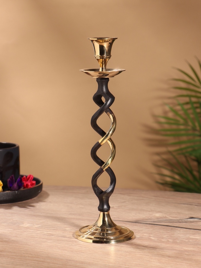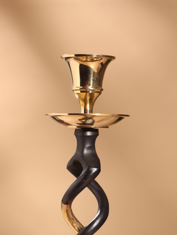 Подсвечник на 1 свечу "Золотое сечение" латунь, черный с золотом 7х7х24,5 см