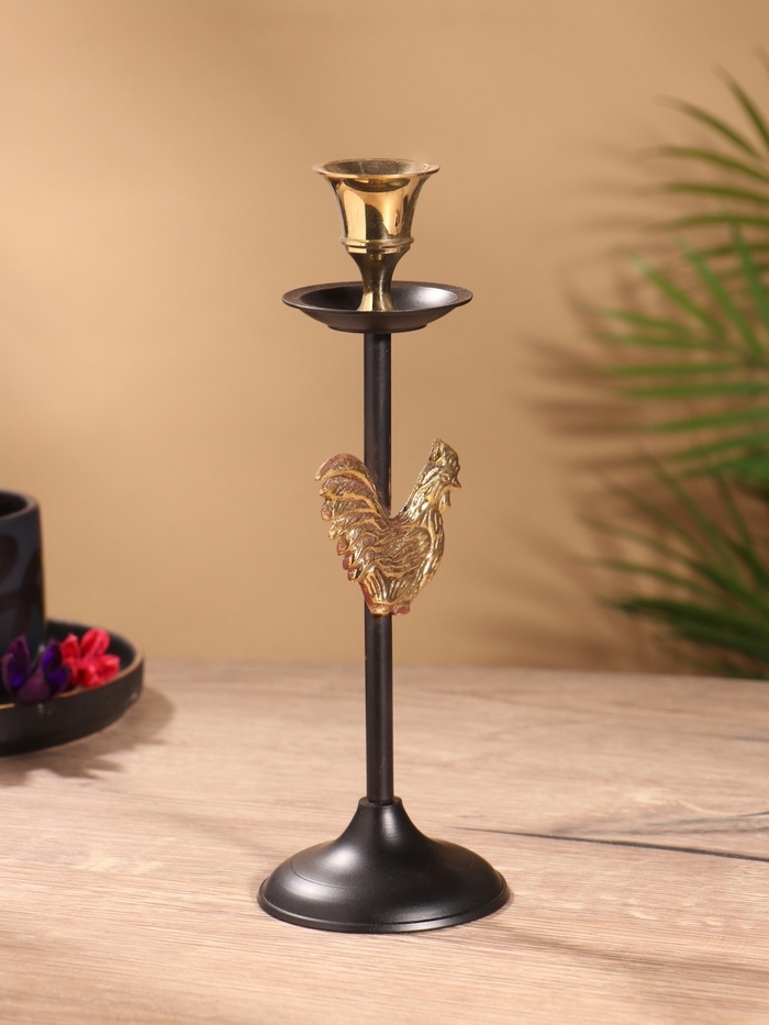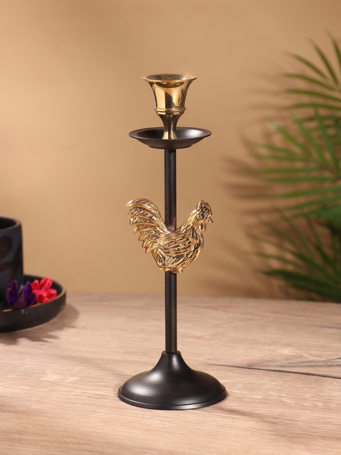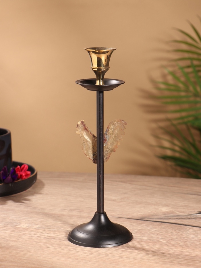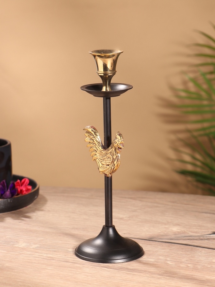 Подсвечник на 1 свечу " Золотой гребешок" латунь, черный с золотом 6х6х21,5 см