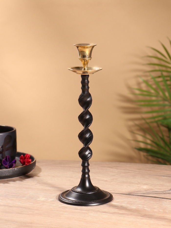 Подсвечник на 1 свечу "Леонардо" латунь, черный с золотом 9х9х29 см