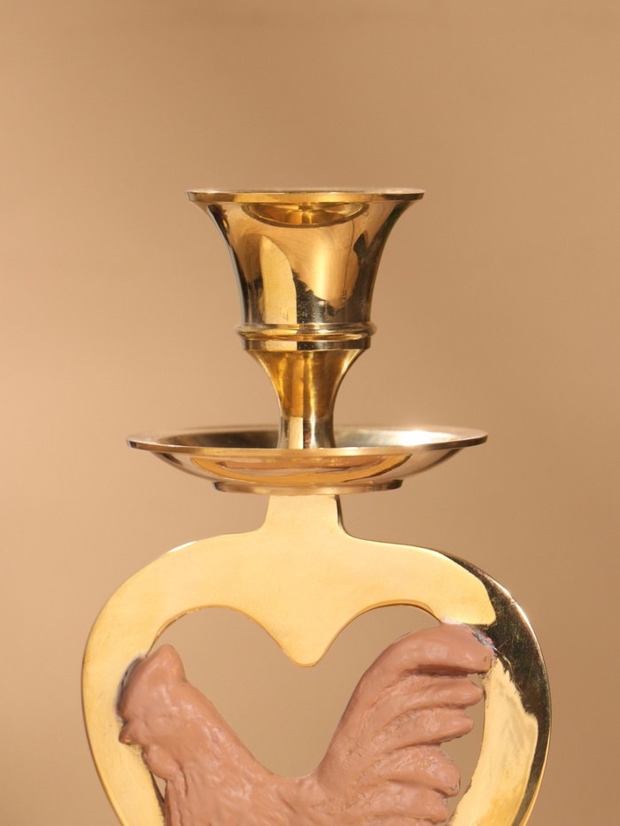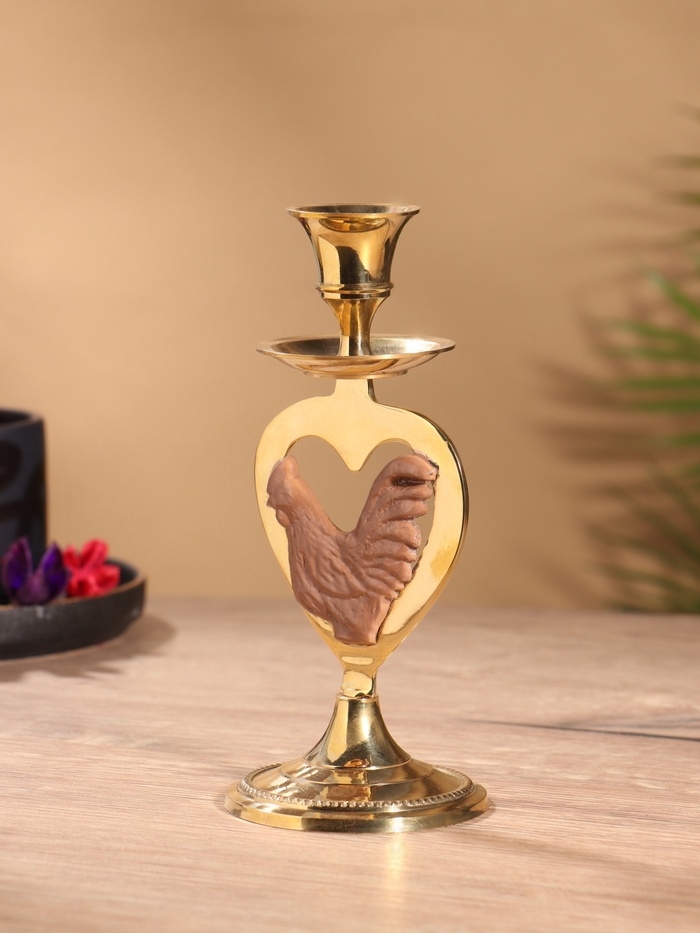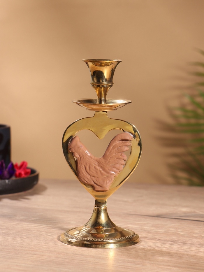 Подсвечник на 1 свечу "Петушок в сердце" латунь, коричневый с золотом 7х8х16,5 см