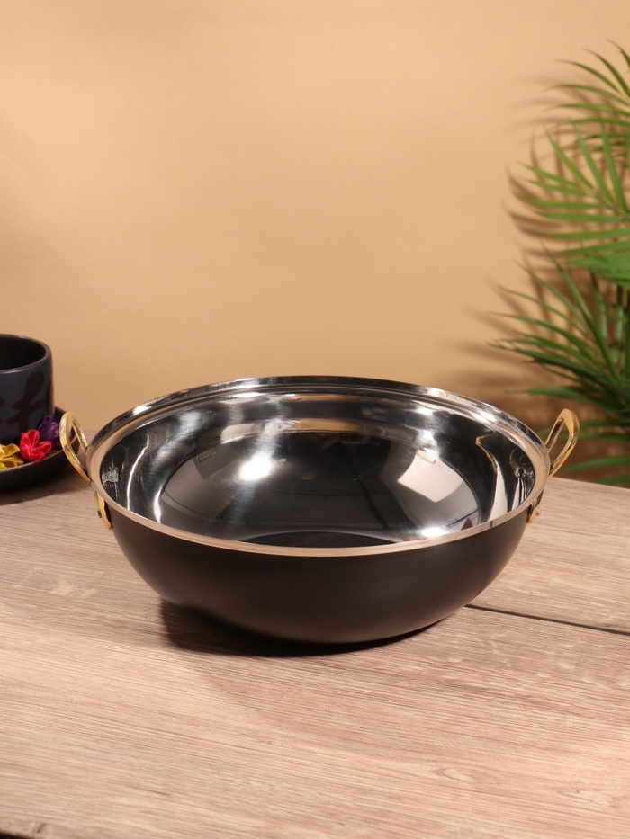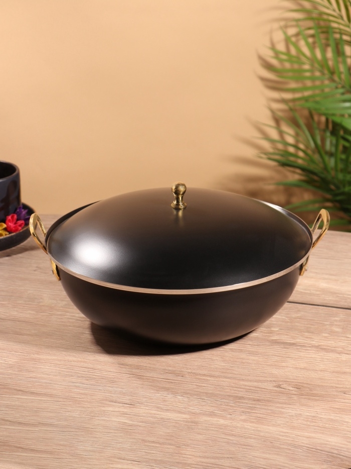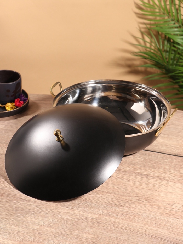 Блюдо глубокое с крышкой "Черный жемчуг" черное. нержавеющая сталь 26,5х24,5х14 см