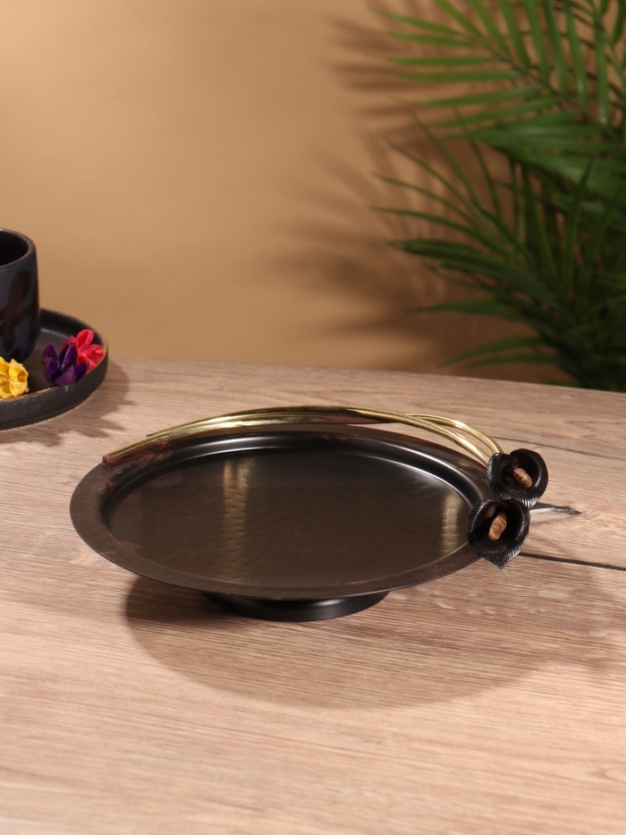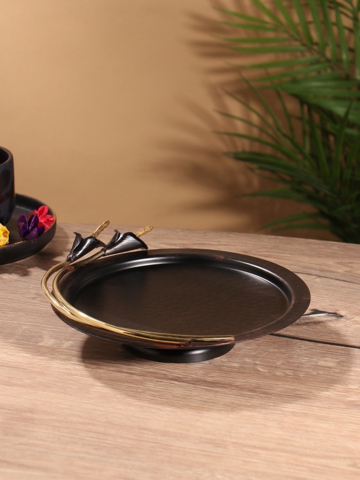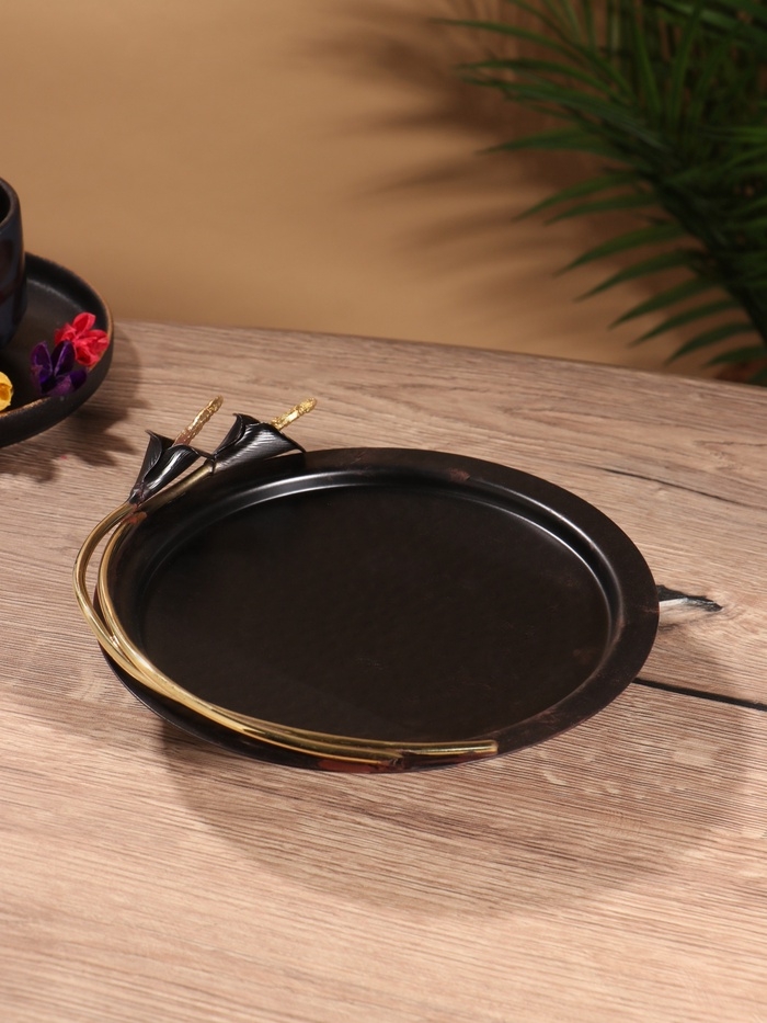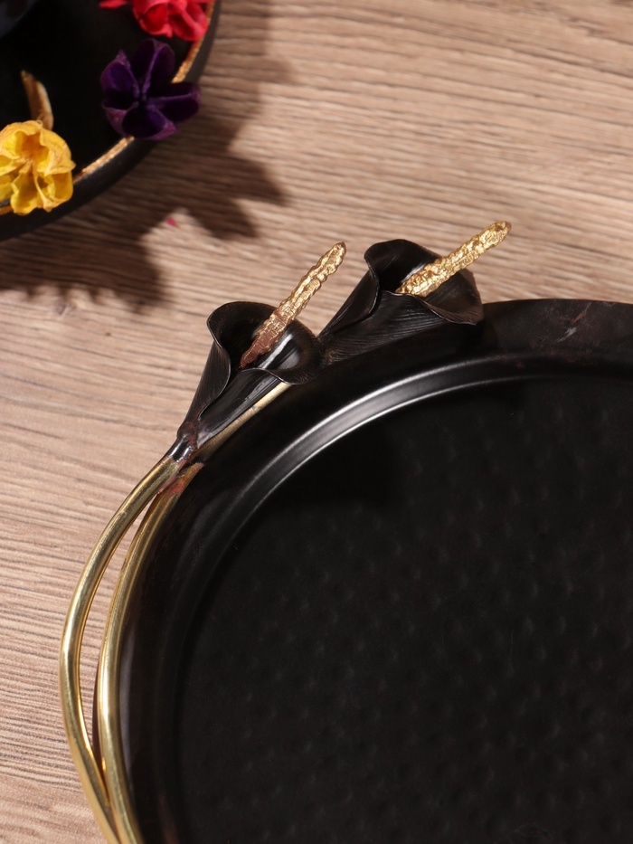 Блюдо сервировочное овальное "Черные каллы" черное с золотом. нержав сталь 22х5х21,5х5,5 см 104395