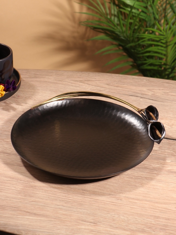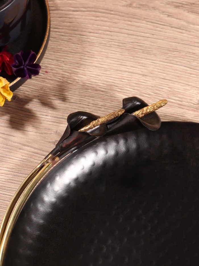 Блюдо сервировочное круглое "Черные каллы" черное с золотом. нержавеющая сталь 26х27х5 см