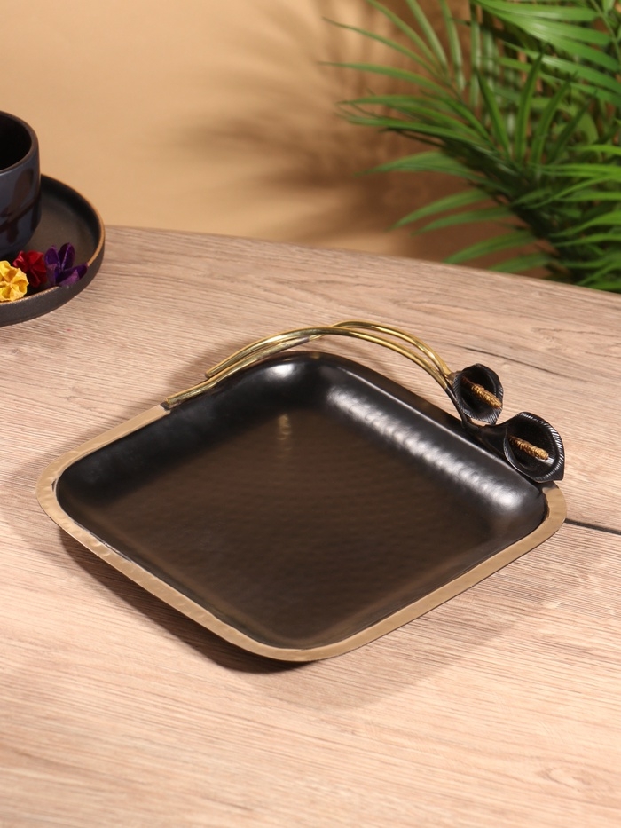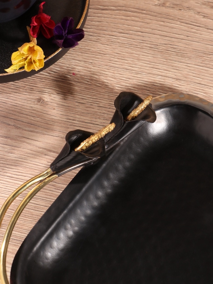 Блюдо сервировочное квадратное "Черные каллы" черное с золотом. нержав сталь 22х24х4 см