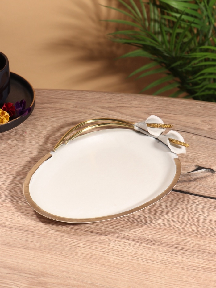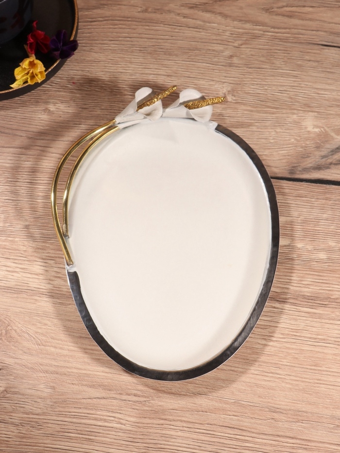 Блюдо сервировочное овальное "Белые цветы каллы" белое с золотом, нерж. сталь 24х17,5х4 см 1043955