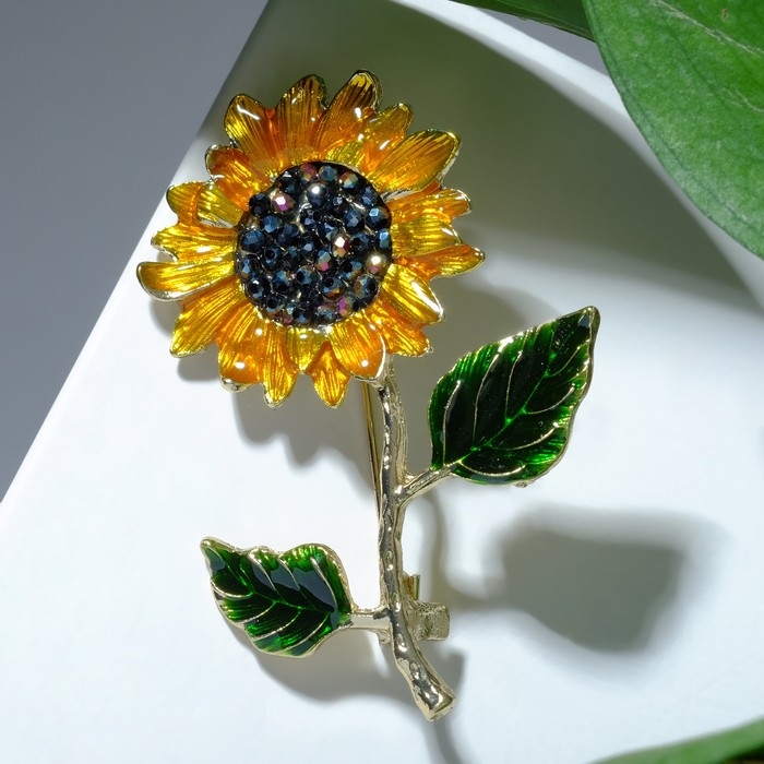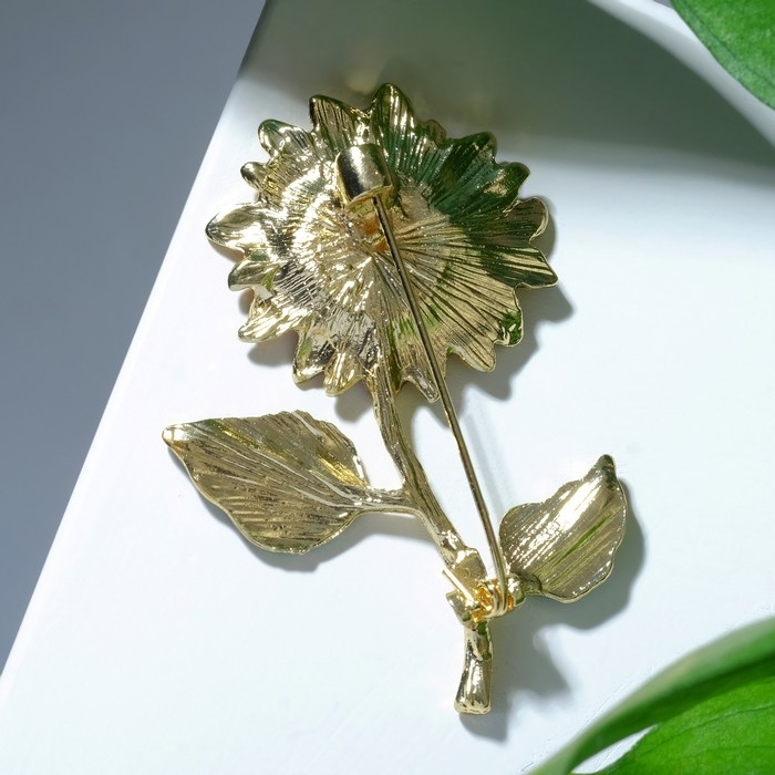 Брошь «Цветок подсолнуха» на стебле, цветная в золоте