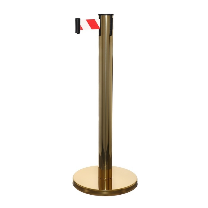 Стойка ограждения золотая, с вытяжной лентой-180см, красная, белый, высота-90см,d- 6см, напольный d-32см
