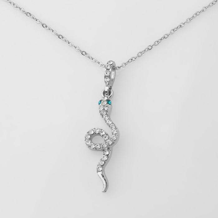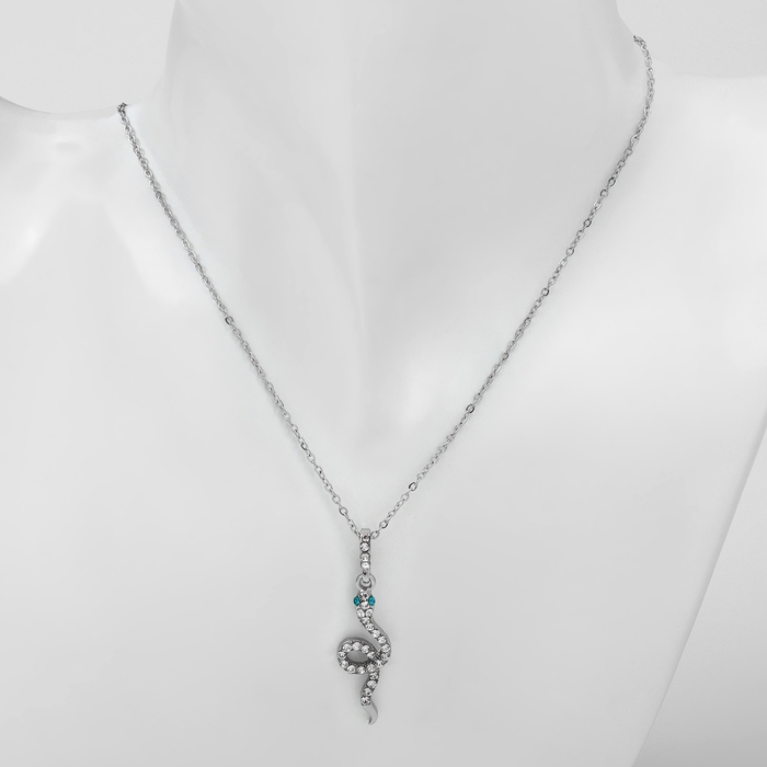 Кулон «Змея» изящная мини, цвет бело-зелёный в серебре